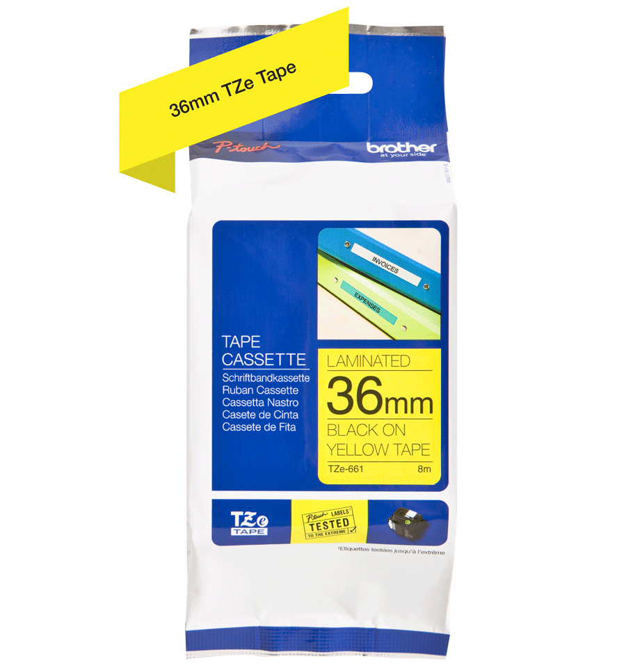 Brother TZe-661, khổ 36mm, dài 8m, Black on Yellow, chống thấm nước
