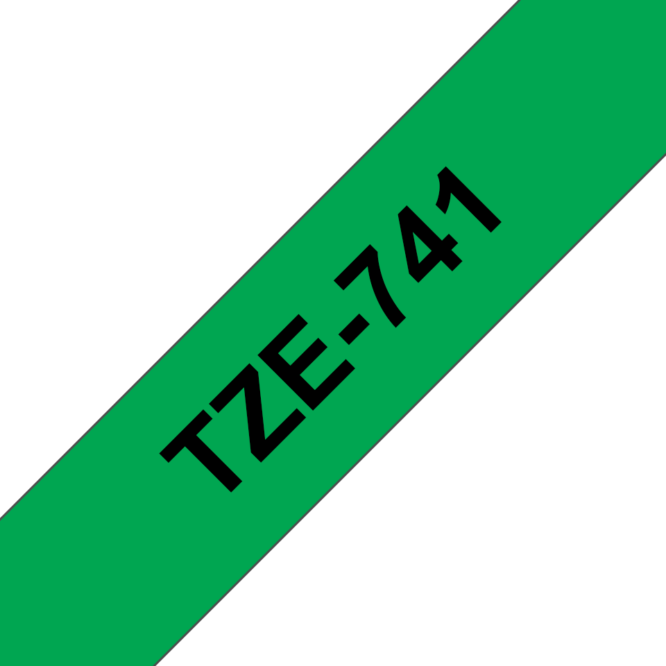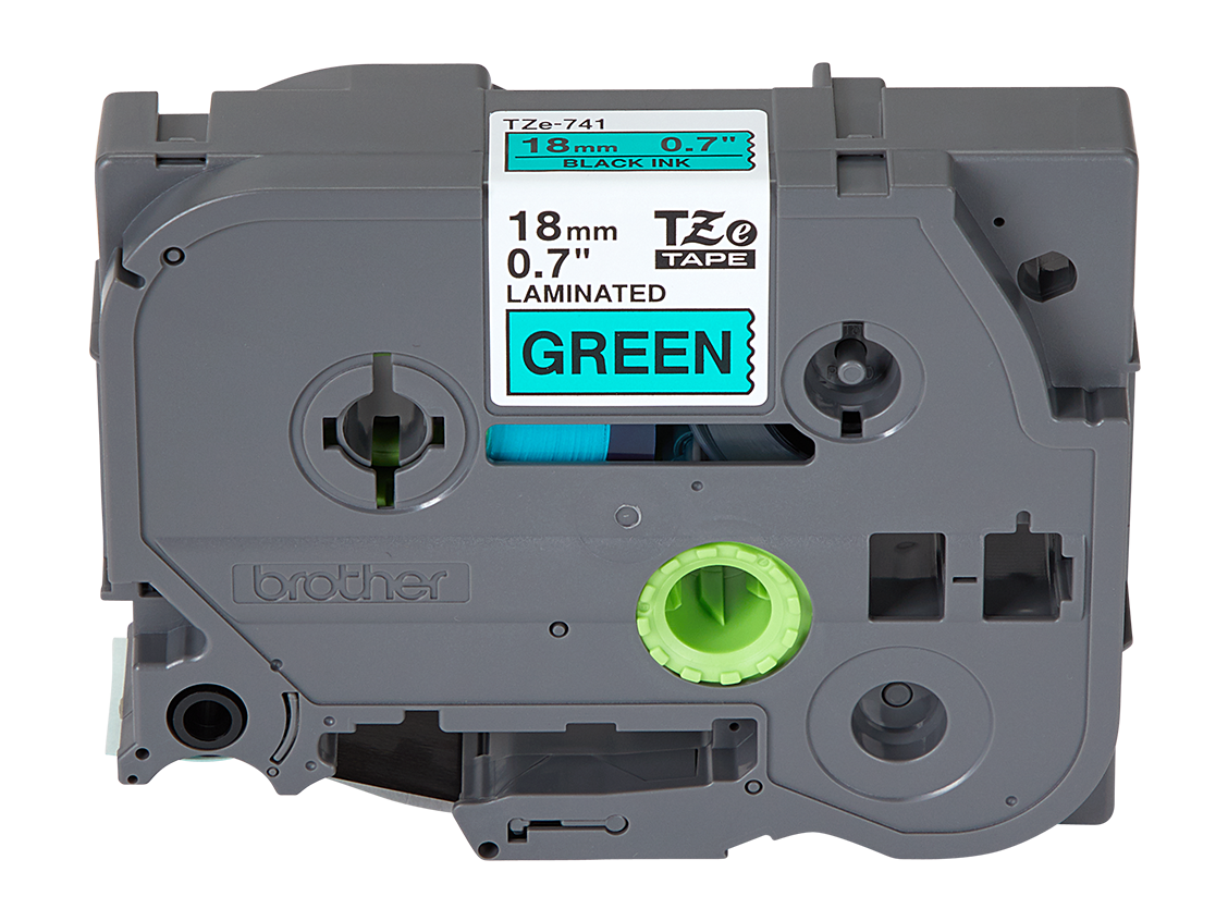 Brother TZe-741, khổ 18mm, dài 8m, Black on Green, chống thấm nước