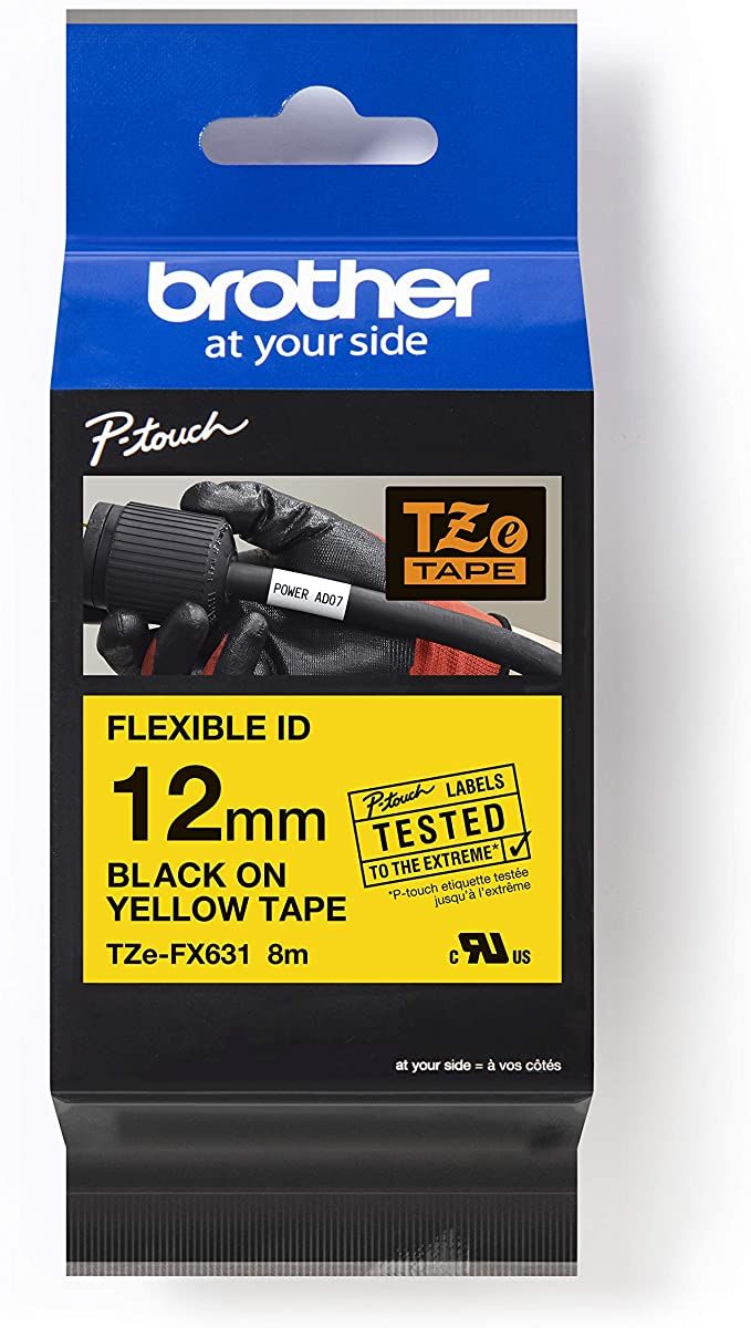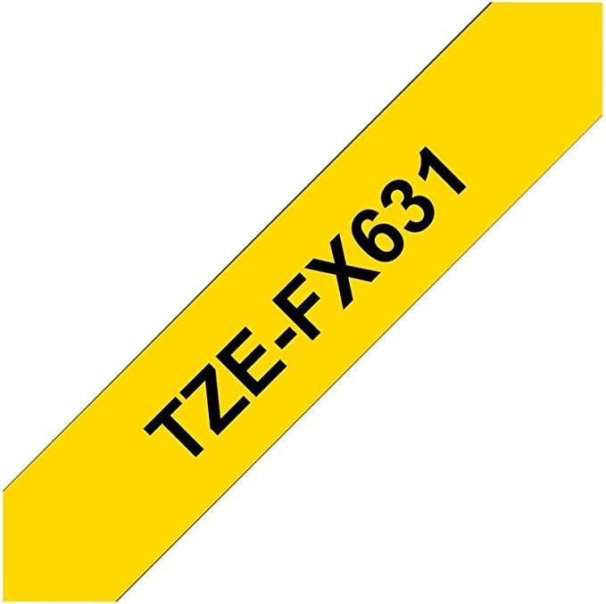 Brother TZe-FX631, khổ 12mm, dài 8m, Black on Yellow, siêu dẻo, chống thấm nước