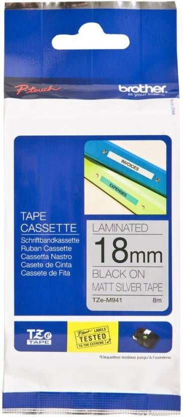 Brother TZe-M941, khổ 18mm, dài 8m, Black on Silver Matt, nhãn bạc, chống thấm nước