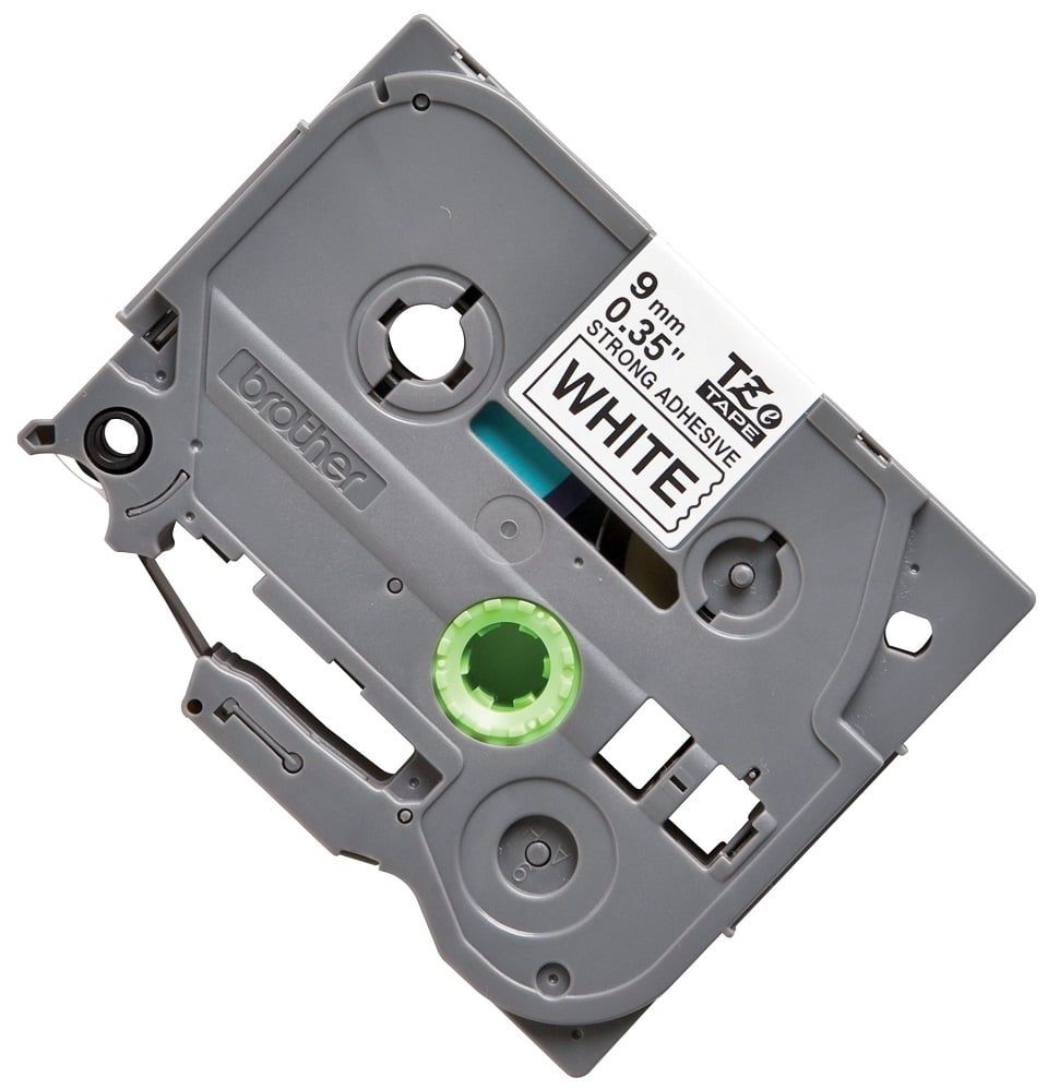 Brother TZe-S221, khổ 9mm, dài 8m, Black on White, siêu dính, chống thấm nước