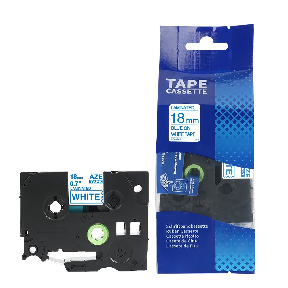 Nhãn in HZe-243 (TZe-243, TZ2-243), 18mm x 8m, Blue on White