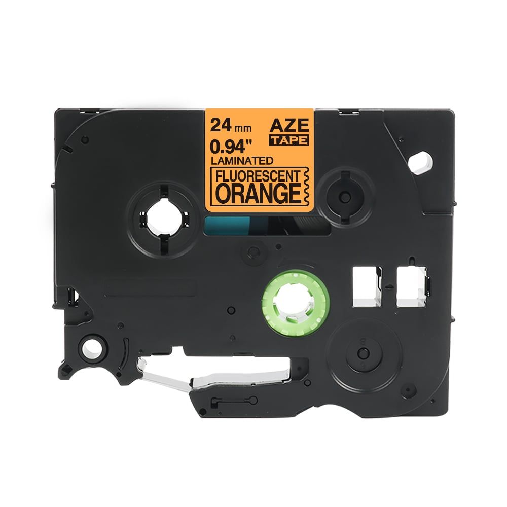 Nhãn in HZe-B51 (TZe-B51, TZ2-B51), 24mm x 8m, Black on Flourescent Orange, Dạ quang