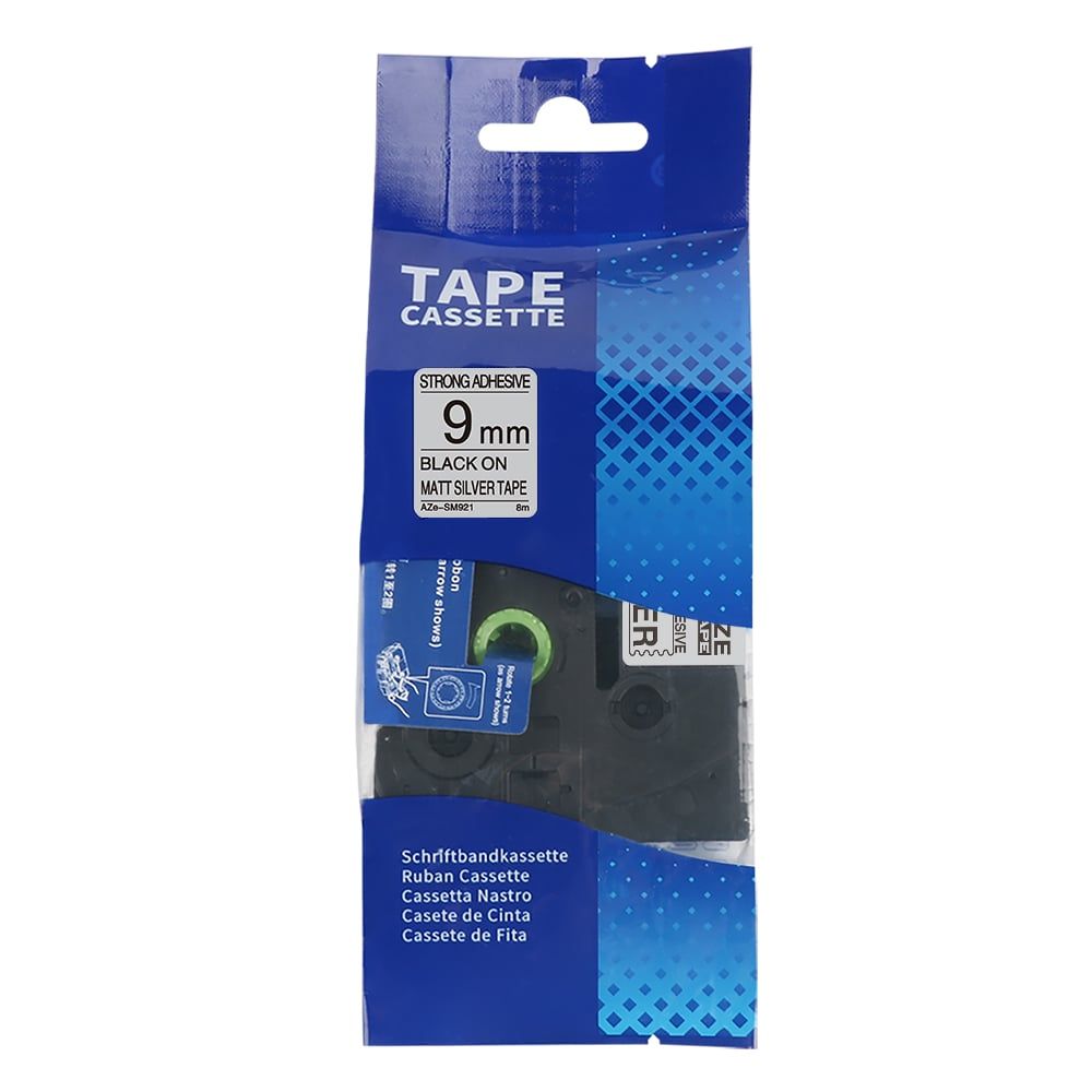 Nhãn in HZe-M921 (TZe-M921, TZ2-M9211), 9mm x 8m, Black on Silver Matt